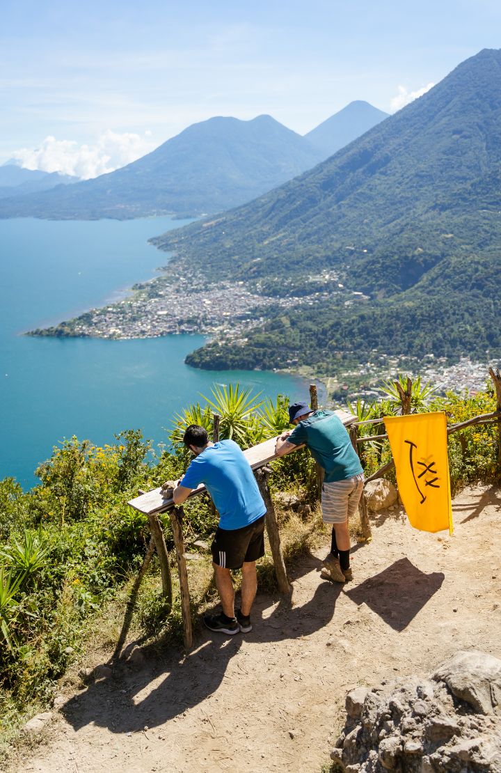 Desde San Juan La Laguna, pasaremos por su icónico mirador de colores para un momento de descanso y muchas fotos. Seguimos nuestro recorrido por la cima de Rostro Maya, podrás disfrutar en una área privada ante la mejor vista de todo el lago, tomar fotos increíbles y relajarte un rato. Después, descenderemos por otro hermoso sendero hasta llegar a Santa Clara La Laguna. Todo esto acompañado por un guía local y el Happy Team, certificado en Montaña Segura.